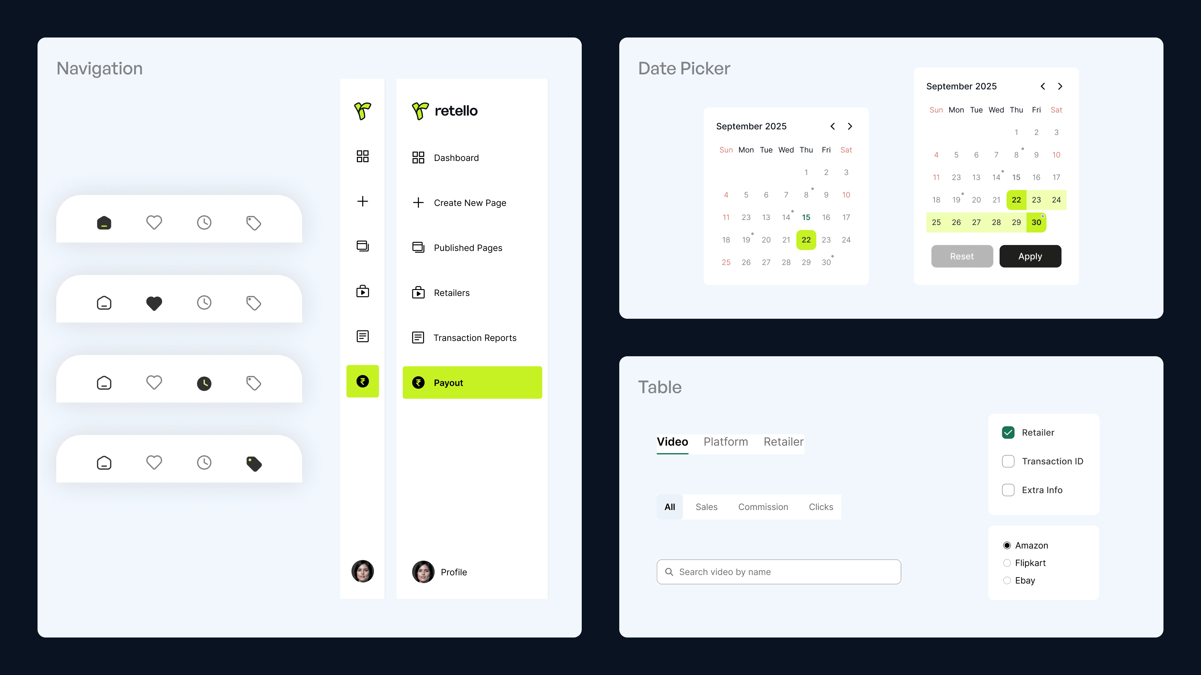 I joined Retello to design the logo and landing page. As trust built with the team, I took on a broader product design role. The brand system became the foundation for the MVP UI patterns.