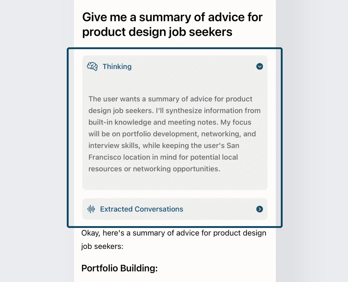To build trust in AI, users need visible signals of progress, context, and grounding, not hidden controls or opaque loading states.